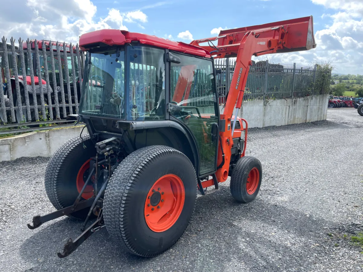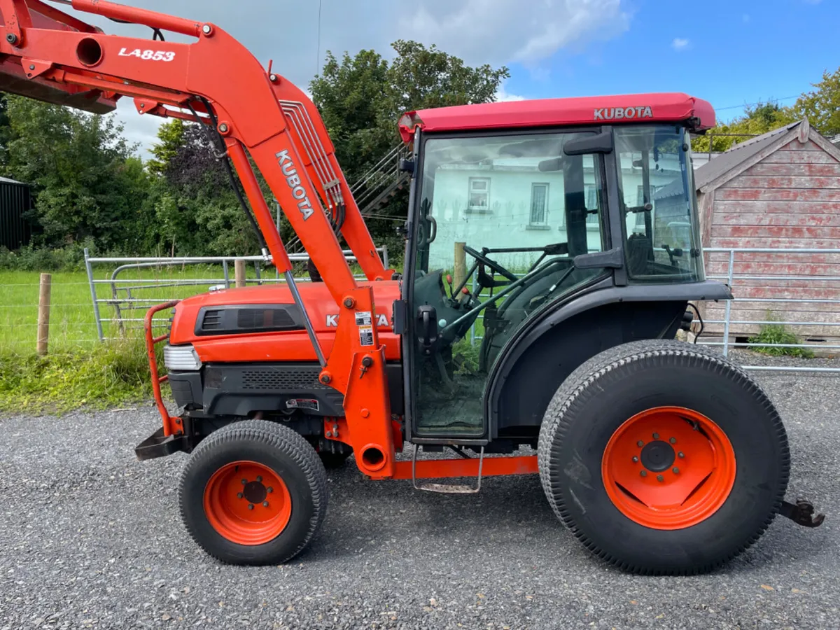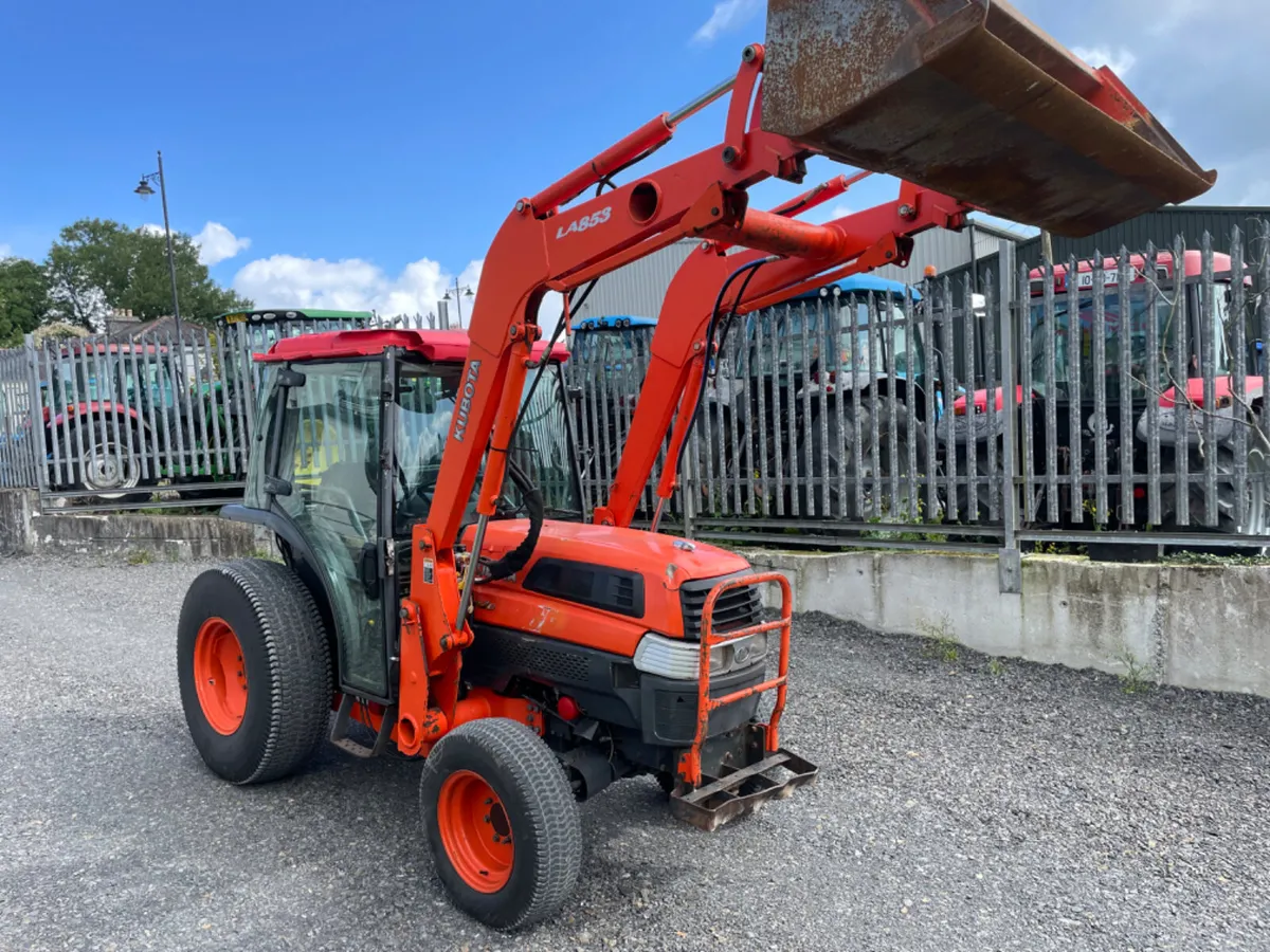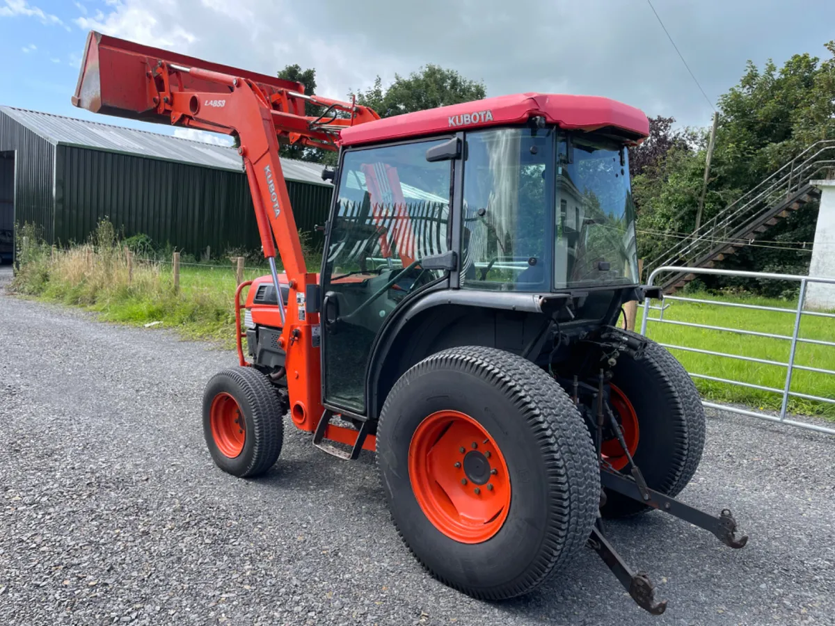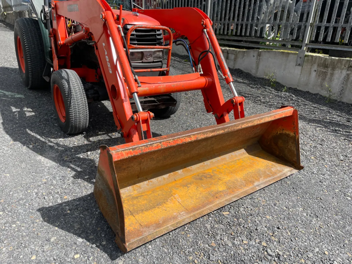 Kompakttraktor Kubota L5030 mit Kubota-Lader mit Joystick-Steuerung und 6-Fuß-Schaufel.