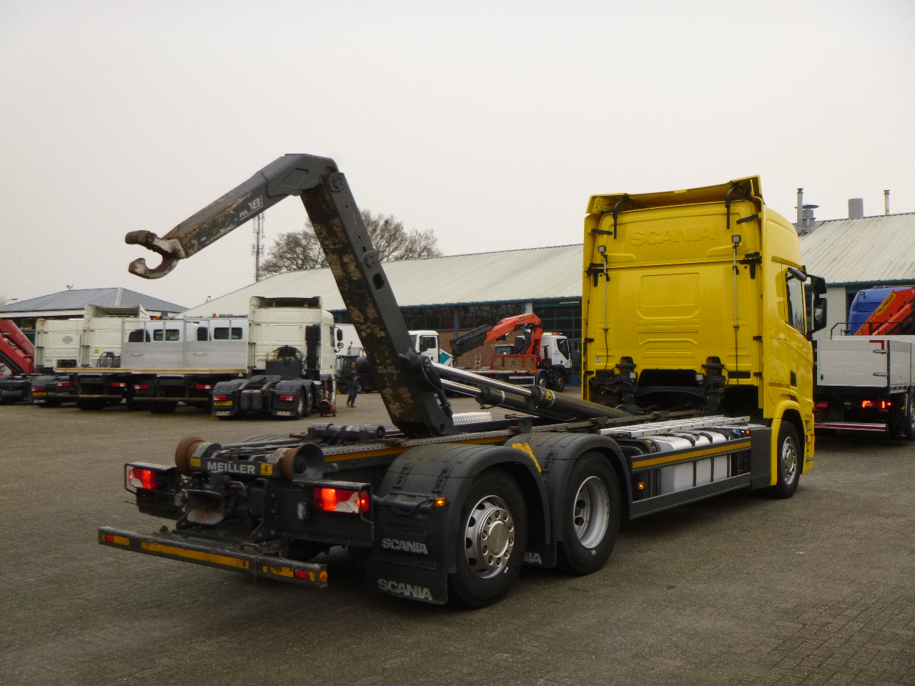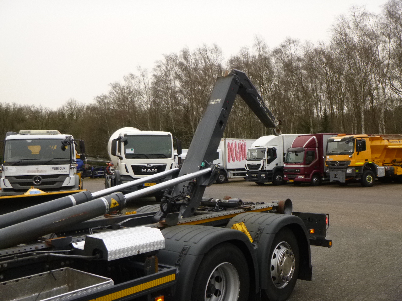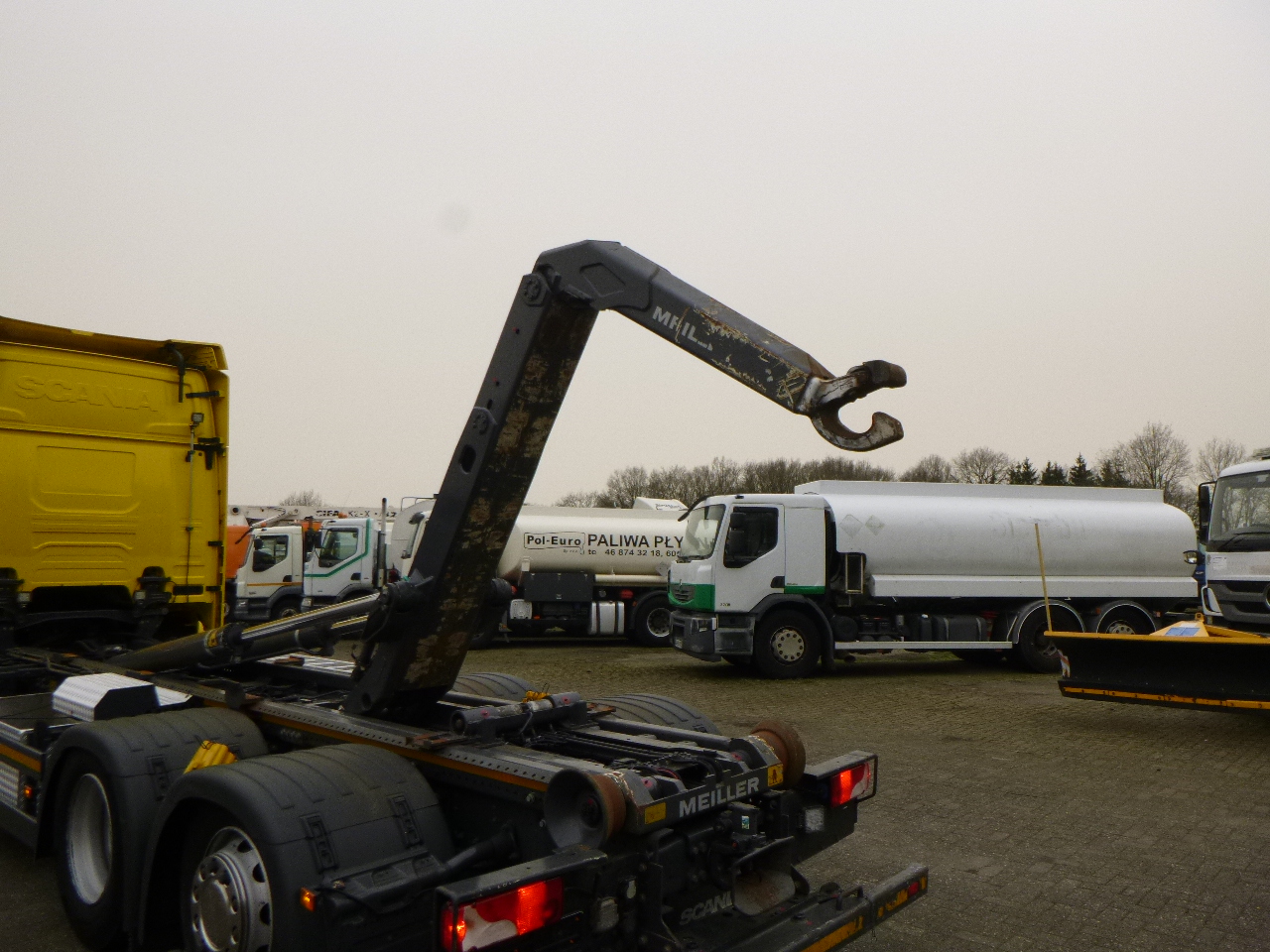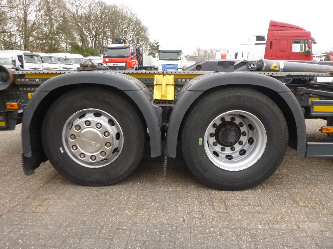 Meiller-Containerhaken, ausziehbare Heckstoßstange, Motorzapfwelle, Euro 6 C, AdBlue, Retarder, Opticruise-Automatikgetriebe, Stahlfederung vorne / Luftfederung hinten, Hinterachslenkung und -hub, adaptive Geschwindigkeitsregelung, Spurassistent, Hochdachkabine, 1 Bett , Zusatzklimaanlage, Klimaautomatik, Nachtheizung, Digitaler Fahrtenschreiber, Scheibenheizung, Kühlschrank, Lederlenkrad, Versandmaße 940×250×400 cm, Anhängeranschluss 50mm // CE-ZERTIFIKAT VORHANDEN