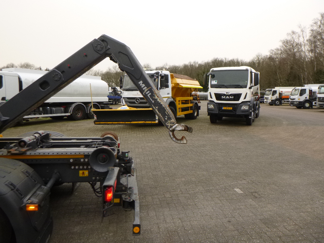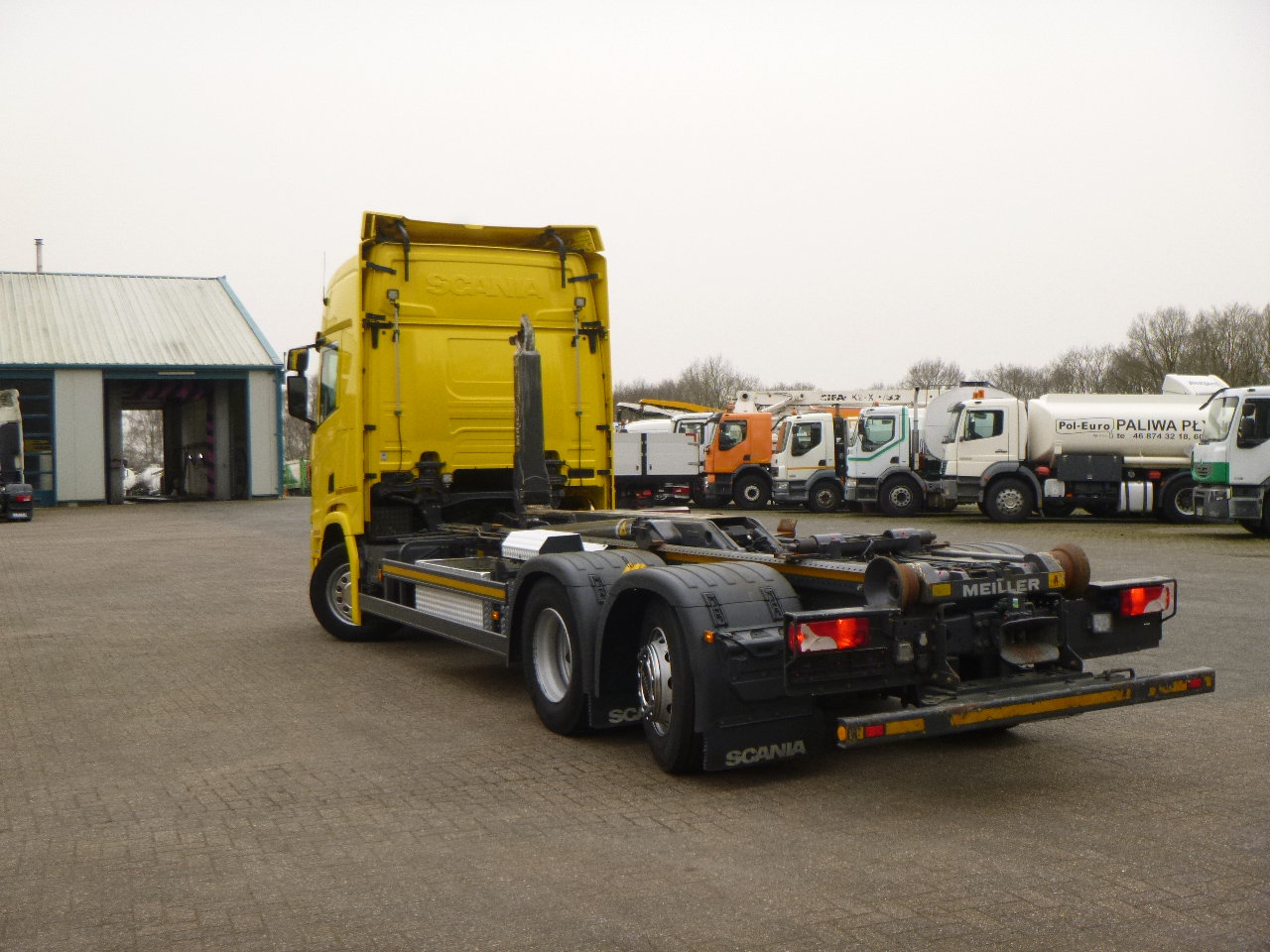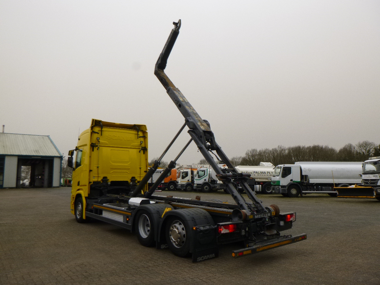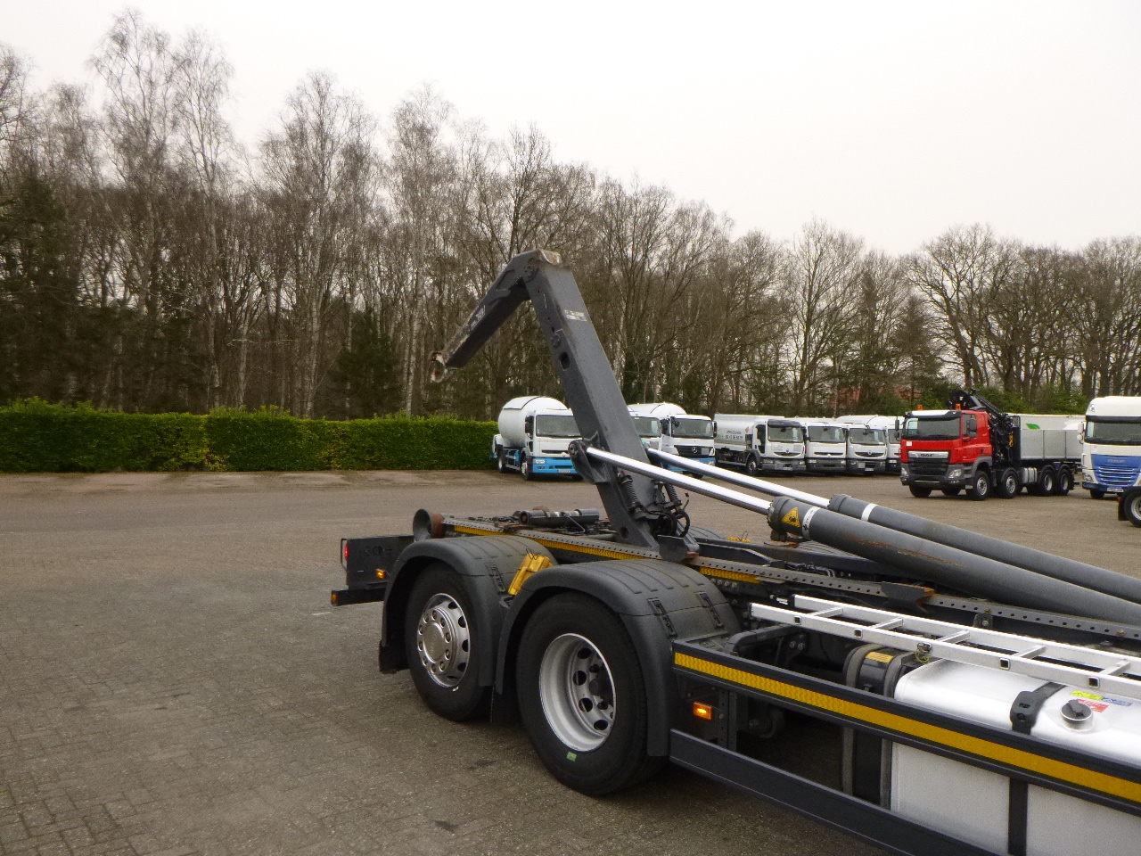 Meiller-Containerhaken, ausziehbare Heckstoßstange, Motorzapfwelle, Euro 6 C, AdBlue, Retarder, Opticruise-Automatikgetriebe, Stahlfederung vorne / Luftfederung hinten, Hinterachslenkung und -hub, adaptive Geschwindigkeitsregelung, Spurassistent, Hochdachkabine, 1 Bett , Zusatzklimaanlage, Klimaautomatik, Nachtheizung, Digitaler Fahrtenschreiber, Scheibenheizung, Kühlschrank, Lederlenkrad, Versandmaße 940×250×400 cm, Anhängeranschluss 50mm // CE-ZERTIFIKAT VORHANDEN