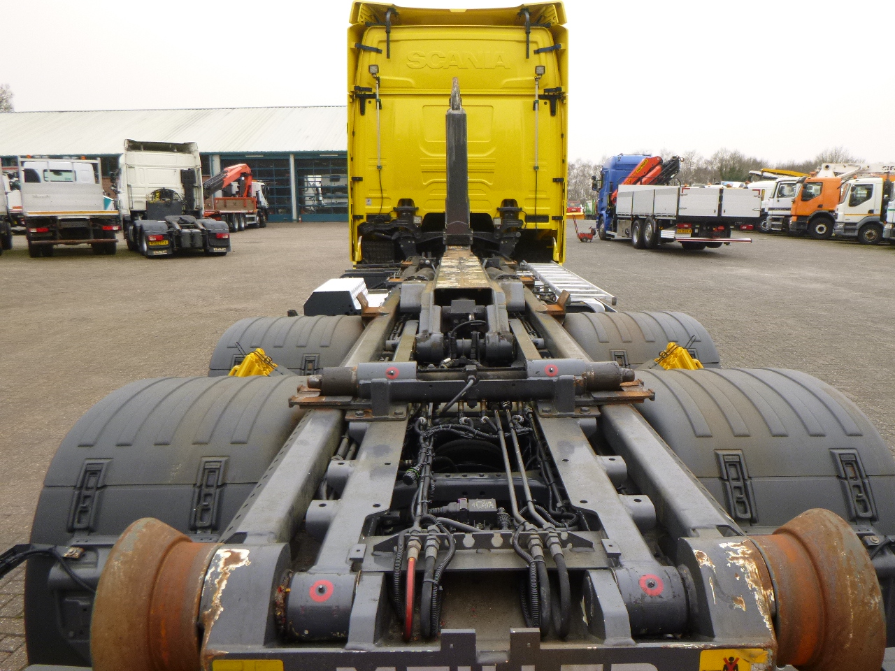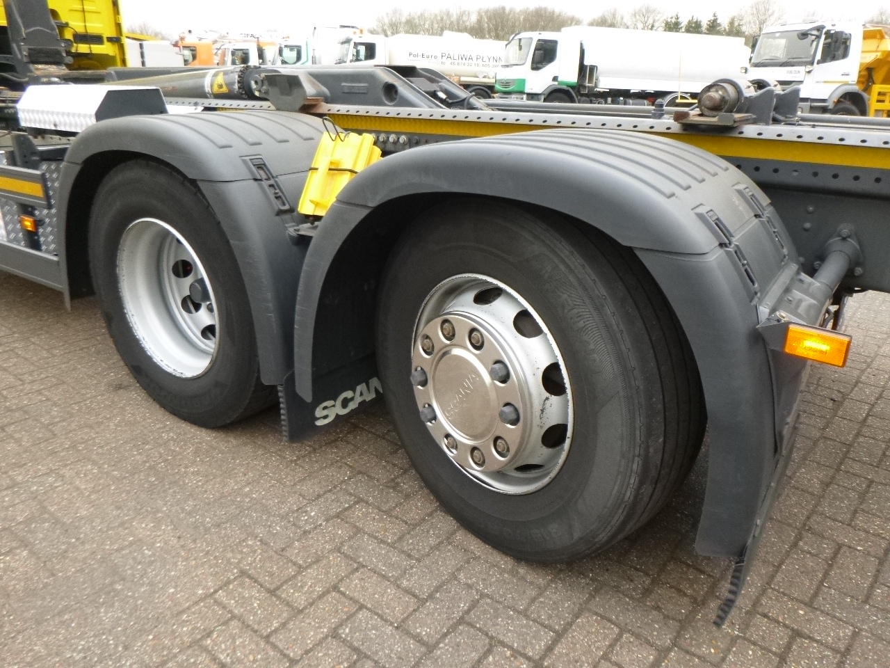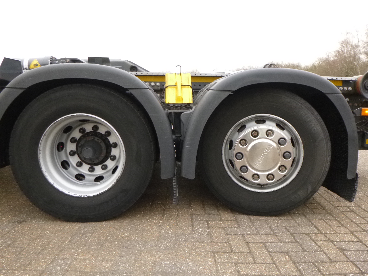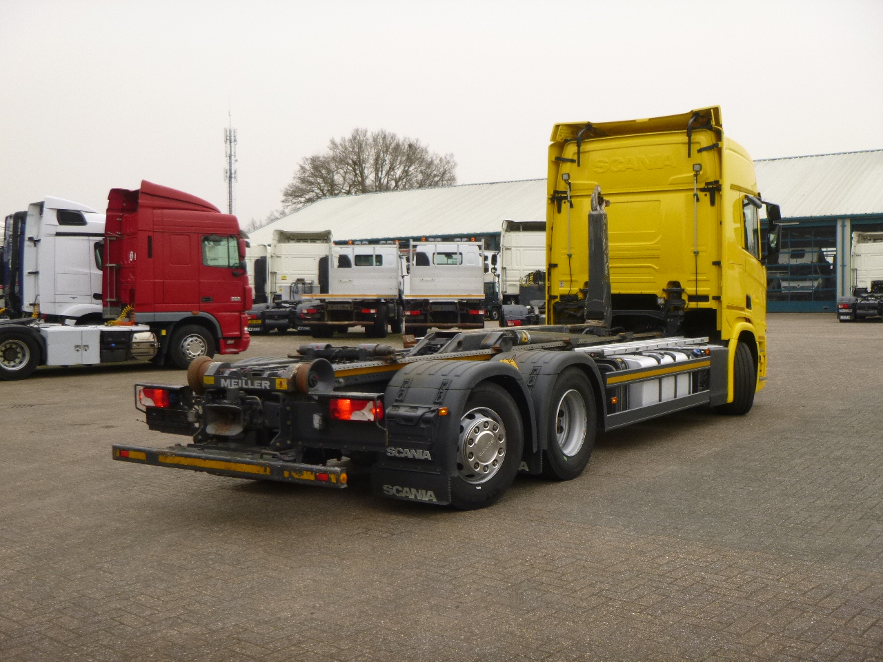 Meiller-Containerhaken, ausziehbare Heckstoßstange, Motorzapfwelle, Euro 6 C, AdBlue, Retarder, Opticruise-Automatikgetriebe, Stahlfederung vorne / Luftfederung hinten, Hinterachslenkung und -hub, adaptive Geschwindigkeitsregelung, Spurassistent, Hochdachkabine, 1 Bett , Zusatzklimaanlage, Klimaautomatik, Nachtheizung, Digitaler Fahrtenschreiber, Scheibenheizung, Kühlschrank, Lederlenkrad, Versandmaße 940×250×400 cm, Anhängeranschluss 50mm // CE-ZERTIFIKAT VORHANDEN